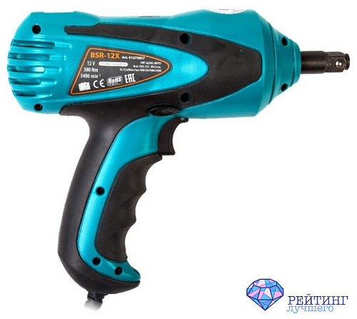 Этот отличный качественный гайковёрт от известного бренда завоевывает любовь и признание многих пользователей. Позволяет в считанные секунды самостоятельно сменить колеса на автомобиле и сделать другую работу с крепежами. Наибольший крутящий момент составляет 380 Н*м, питается прибор от сети. Оборудован опцией реверса, можно настраивать частоту вращения, что позволит открутить болты и гайки, не повредив резьбу. Производитель в этом устройстве предусмотрел все: имеется лампа точечной подсветки для работы в элекрощитке, в бытовых приборах и под кузовом авто. Блокировка кнопки включения позволяет работать с прибором наиболее безопасно, а наличие кейса для хранения – это еще одна фишка данного гайковерта. Пользователям нравится, что модель способна подключаться к бортовой сети автомобиля и эффективно работать от нее. Хороший прибор в соотношении стоимости и отменного качества станет достойной покупкой новичка или мастера.