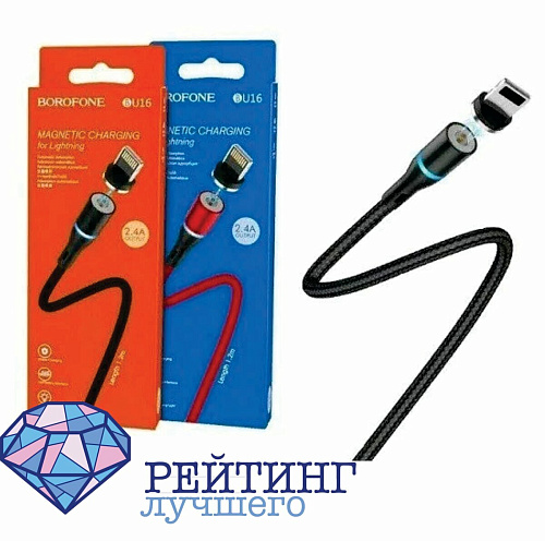 В нашем рейтинге уже присутствует модель бренда Borofone, а эту мы решили включить из – за ее возможности подключения магнитной зарядки. BOROFONE BU16 Skill покрыт тканевой оплеткой черного цвета из нейлона, что предотвратит возникновение заломов и перегибов, повышая гибкость шнурка. Его длина составляет один метр, внутри расположен сердечник из меди, состоящий из 110 медных проволок, и пропускающий ток силой до 2,4 А. Подключение к адаптеру питания или ПК для синхронизации и передачи данных осуществляется через разъем USB, у которого коннекторы изготовлены из алюминиевого сплава с добавлением TPE. Магнитный зарядный кабель снабжен индикатором, который подскажет, когда подзарядка подойдет к концу. Магнитное притяжение очень сильное, поэтому шнур способен выдержать вес смартфона на тот случай, если он выпадет из рук или соскользнет с поверхности. Также его наличие упростит подключение зарядного устройства со смартфоном – достаточно всего лишь поднести их друг к другу. Отзывы о товаре положительные, покупатели хвалят его за удобство использования, хороший магнит и качество изготовления.