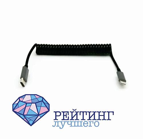 Эту модель аксессуара мы решили включить в наш рейтинг из-за витого выполнения по всей длине. Такой формат компактен при хранении или транспортировке, а если нужно, то может растянуться на нужную длину, максимальное значение которой два метра. Также такое оформление противостоит перегибам, заломам и спутыванию, и идеально для использования в автомобиле. Сечение провода круглое, максимальный пропускаемый ток составляет 5А. Скорость передачи данных равна 480 Мбит/с. Подойдет для подключения всех устройств IOS к компьютеру или адаптеру питания, в которых имеется разъем USB тип C. Отметим, что быстрая зарядка поддерживается этим кабелем, однако для ее осуществления вам нужно и зарядное устройство с маркировкой Power Delivery. Эта технология зарядит смартфон на 50% емкости аккумулятора за полчаса, далее скорость снизится до стандартной. Покупатели высоко оценили товар, хвалят хорошее качество товара и отсутствие недостатков.