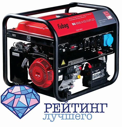 Мотор имеет вместительностью 460 куб.см с шестнадцатью лошадиными силами, одним цилиндром и четырьмя тактами. Работать автономно без перерыва Fubag BS 8500 A ES DUPLEX может до восьми часов, при этом в качестве топлива применяется АИ-92, расход которого 3,1 литр в час. Топливный бак объемом двадцать пять литров – самая большая вместимость среди участников рейтинга.