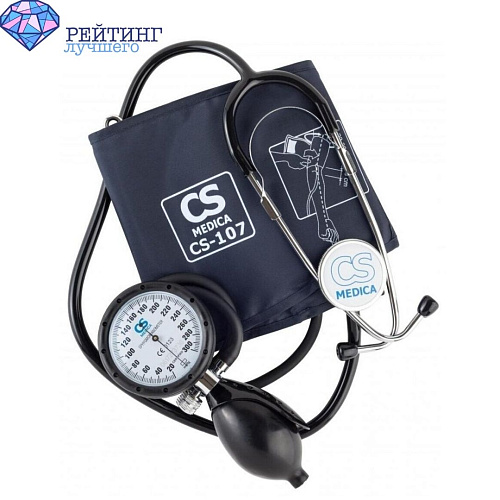 Это один из самых точных измерителей давления на рынке, который очень прост и удобен в использовании. Он оснащен стандартной манжетой, состоящей из мягкого нейлона, и имеет пылезащитный фильтр в груше, что увеличивает срок его службы. CS Medica CS 107 идет в комплекте со стетоскопом, а потому позволяет мерить давление и прослушивать легкие. Именно поэтому он может быть как частью домашней аптечки, так и находиться в арсенале педиатра и терапевта.