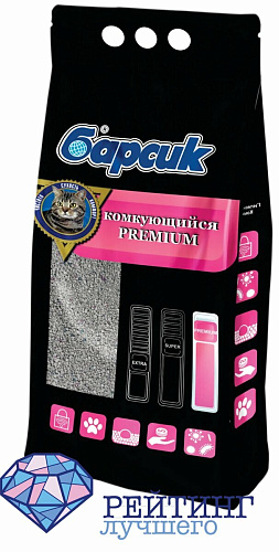 «Чистота, сухость, комфорт» - лозунг бренда Барсик, который уже давно выпускает свою продукцию и успел зарекомендовать себя на полке с кошачьими наполнителями для туалетов. Средство премиум класса при намокании образует комок, который легко выкинуть. Материал гранул – бентонитовая глина, которая еще и защищает от распространения неприятного запаха ввиду своей сорбционной способности. Фасуется в пластиковую упаковку с отверстиями для пальцев наверху для удобства переноски. Там же располагаются засечки, позволяющие легко открыть упаковку без ножниц. Объем пачки равен 5,5 л, при этом впитать он может до десяти литров, что почти в два раза больше. Наполнитель не пачкает лапы и шерсть питомцев, не разносится по всем углам и щелям в квартире. Обладает антибактериальными свойствами, поэтому не даст развиться микроорганизмам в лотке. Покупатели высоко оценили товар и не отметили ни одного недостатка.