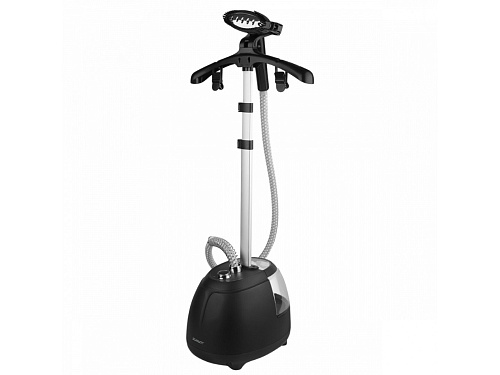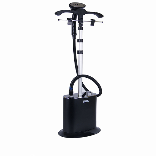 Этот напольный отпариватель имеет вместительный бак для жидкости объемом 1,6 литра, благодаря чему он работает долгое время без дозаправки. Модель от известного бренда считается популярным и востребованным вариантом рейтинга за счет удобства использования и мощности 2000 Вт. Пластиковый корпус облегчает вес аппарата, его легко протирать влажной салфеткой для устранения отпечатков и загрязнений. Предусмотрен снимающийся резервуар для воды для удобства набора жидкости из крана. Нагревается в течение 30 секунд, что является чуть ли не рекордом, особенно если учитывать вместимость контейнера для жидкости. Модель умеет горизонтально отпаривать вещи, также предусмотрен регулятор подачи пара. Работает 30 секунд, после чего требуется дозаправка новой порцией чистой воды. Телескопическая стойка раздвигается на высоту от 80 до 150 сантиметров, что позволит работать с отпаривателем людям с любым ростом.