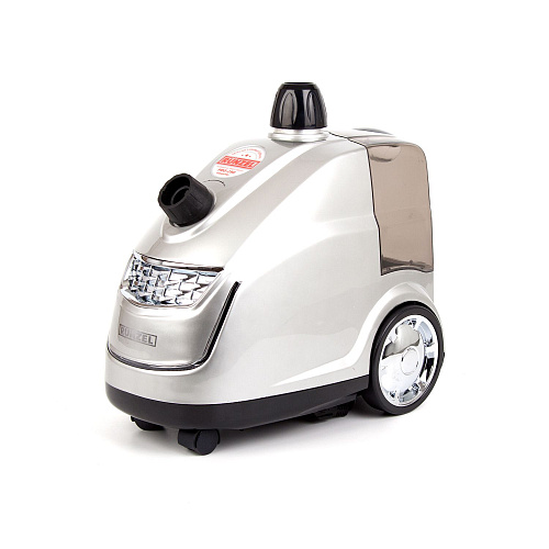 Недорогой, но функциональный и добротно собранный прибор имеет напольную конструкцию и вместительный резервуар для жидкости объемом полтора литра. Прибор пользуется большим спросом среди населения во многом благодаря невысокому ценнику и мощности 1800 Вт. Отпариватель приводит в порядок сильно измятые вещи, не оставляя на них блеска и не деформируя структуру ткани. Контейнер для воды здесь снимается для ещё большего удобства использования и набора жидкости под краном. Работает 40 минут на одной порции жидкости, а нагревается до готовности всего 45 секунд. Предусмотренная регулировка подачи пара настроит вам нужный параметр под каждый тип ткани, а телескопическая трубка позволит работать с агрегатом людям любого роста. С отпаривателем справится как пожилой человек, так и подросток за счет удобного пистолета и разных режимов. Производитель внедрил в этот прибор насадку-щетку для приподнимания ворса шерстяных и плюшевых изделий. Имеющаяся опция автоматического отключения позволит мотору не перегреваться и работать в течение длительного срока надлежащим образом. Вес отпаривателя составляет 42 килограмма, он довольно габаритный и потребует отдельного места для хранения, однако удобство использования и долговечность делают из него настоящий хит нашей подборки.