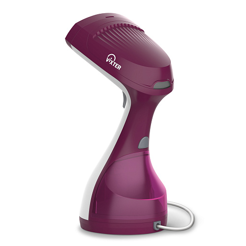 Этот аппарат становится уверенным участником рейтинга по многим причинам: набирает огромное количество пользовательских отзывов и высоких оценок, имеет удобную конструкцию с крепким хватом и стильный розовый корпус, который поднимет настроение. Модель оснащена в меру вместительным бачком для жидкости на 140 мл, этого хватит примерно на 10 минут отпаривания тонких тканей. С более плотным твидом, льном и в некоторых случаях хлопком агрегат не способен справиться, для таких случаев лучше подумать о стационарной модели. Мощность отпаривателя заявлена на 1200 Вт, предусмотрен регулятор подачи пара, с которым вы можете корректировать силу струи.