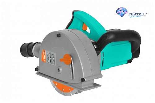 Этот известный в своих кругах штроборез обладает всеми необходимыми параметрами для качественного штробления: хороший диаметр диска 125 мм, оборотистость (9000 оборотов в минуту), быстрая работа, мощность на должном уровне – 1600 Вт. Кроме того, агрегат обладает приятной и разумной ценой для своих технических характеристик – 7500 рублей. В этой модели предусмотрен штуцер для подключения пылесоса и работы в жилых помещениях, также разработчиком создана опция плавного старта. Блокировка от случайного включения обезопасит оператора от внезапного пуска инструмента. Неплохой штроборез в средней ценовой категории поможет развести проводку в доме или проложить трубопровод небольшого диаметра. Работает быстро, справляется со своими прямыми обязанностями, с ним справится опытный мастер, для новичка лучше подыскать иной инструмент. Из плюсов данного агрегата нам хотелось бы отметить особую надежность конструкции, минимум вибраций, долговечность. Несмотря на его универсальность, покупать его разумно только при планировании работ по панелям. При работе со стенами штроборез хорошо вести сверху-вниз, в таком случае он будет качественно пилить под тяжестью своей массы.