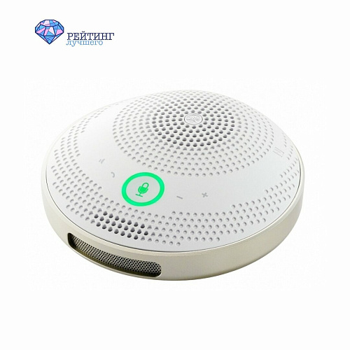 Хороший и лёгкий спикерфон из пластика отлично подойдет для различного рода встреч до 8 человек. В данной модели присутствует 2 вида подключения. К мобильному телефону можно быстро подсоединиться с помощью Bluetooth системы, а к компьютеру через USB кабель без необходимости дополнительной установки программ. Сверху корпуса находятся сенсорные кнопки для управления во время разговора, а сбоку есть механические кнопки выключения устройства и управления системой Bluetooth. Шесть микрофонов, установленных по всему корпусу спикерфона, позволяют выделять звуки вне зависимости от того, где находится собеседник. Плюс ко всему, умная система самостоятельно регулирует громкость голоса в зависимости о того на каком расстоянии от прибора находится говорящий, чтобы звук передавался равномерно. Из улучшений здесь также присутствует алгоритм DSP, который отвечает за подавление эхо (до 7 дБ) и фонового шума (до 20 дБ). Благодаря таким показателям ваш голос передается четко и без посторонних звуков. Внутренняя батарея с мощностью 6700 мАч позволяет активно использовать прибор до 24 часов, а ещё заряжать от нее другие устройства. Anker Powerconf хорошо работает с онлайн-конференциями.
