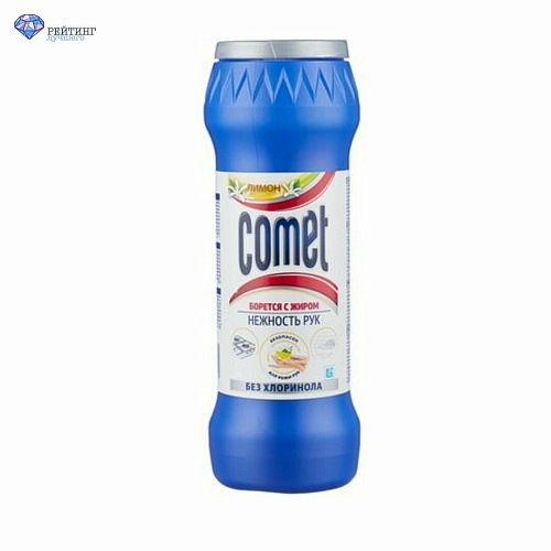 Очередной универсальный вариант, но теперь в формате порошка. Идеален для любителей сыпучих продуктов, имеет небольшой расход при массе около 500 грамм. Удобная небольшая банка и дозатор. Безопасен для кожи рук, а также обладает приятным ароматом лимона. В составе нет хлора, однако очищение остаётся на высоком уровне из-за использования очищающих микро-кристаллов. Применяется нанесением на поверхность на 10 минут, очищает множество загрязнений, но не справится с вариантами особой сложности. В целом, оригинальный вариант без вреда для кожи и дыхательных путей.