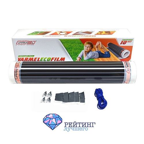 Как дополнительный источник тепла рекомендуется сверхтонкий инфракрасный пленочный пол (0.4 мм) - Varmel ECO Film. Имеет небольшие размерные параметры – 100х50 см. Относится к экологически чистому источнику отопления. Быстро и без трудностей монтируется под поверхность пола, стенки или потолка. Дополнительная стяжка не требуется. Работает без звука. Не сжигает кислород. Сможет обогреть площадь 0.5 м2. Мощность пленки 220 Вт/м². Длина холодного кабеля – 1.5 м. Гарантия 10 лет.