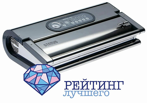 И завершаем наш рейтинг профессиональным вакуумным упаковщиком ProVAC 360 бренда STATUS. Внешний вид его говорит о многом: красивый серебристый корпус из комбинации металла и пластика, стильные сенсорные кнопки на верхней панели отвечают за ручное управление прибором. На крышке располагается ручка, которой будет удобно закрыть пакет для проведения процедуры. Мощный мотор выдает 400 Вт, что обеспечивает производительность до тридцати литров в минуту и давление вакуума не ниже 0,95 бар. Максимальная длина запаечного шва составляет тридцать пять сантиметров. Специальным шлангом, подключаемым фитингом к камере внутри возможно откачивать воздух и из пищевых контейнеров, тем самым продлевая срок хранения их содержимого. В комплект входят различные упаковочные материалы, чтобы вы могли сразу приступить к работе: рулон пленки 28х300 и 35х300 см, по пять пакетов размерами 20х28 и 12х55 см, пять двухсторонних клеящих лент Status Stiki. Кроме этого, комплектуется шлангом и ручным резаком, чтобы отрезать от рулонов кусок нужных размеров. Габариты аппарата составляют 51х13,7х28 см при весе 9,3 килограмма. Покупатели высоко оценили товар и не отметили ни одного недостатка.