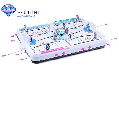 В отличие от классических настолок, Десятое королевство выпустил хоккей с магнитным полем. Вместо шайбы - мяч. Команду игроков сменили две фигурки, которые по принципу хоккея, пытаются забить гол в ворота соперника. Хотя ворота, в прямом смысле слова, отсутствуют, но есть специально очерченные выемки для мяча. Размеры игры 48\36 см. Высота 15 см. По периметру поля расположены деревянные бортики, которые предотвращают выпадение мяча. Каркас игры изготовлены из древесины. В комплектации есть механический счетчик очков. Такая хоккейная интерпретация подходит больше детям, для тренировки координации и скорости движений. Срок службы 1 год.