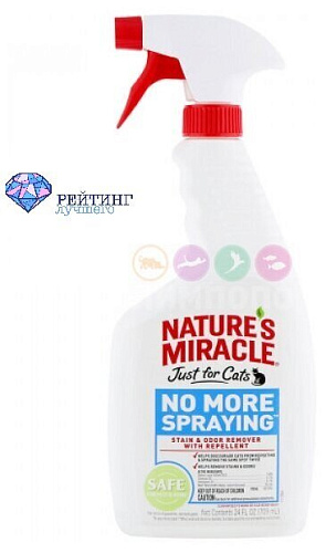 Спрей антигадин для кошек от бренда Nature's Miracle - универсальное средство для предотвращения меток домашних питомцев. Продукт состоит исключительно из натуральных компонентов. Это обеспечивает безопасность, как для вашей кошки, так и для всех членов семьи. В его составе нет агрессивных или токсичных веществ. Благодаря этому, риск аллергических реакций сведен к минимуму. Причем опять-таки это касается как животных, так и людей.