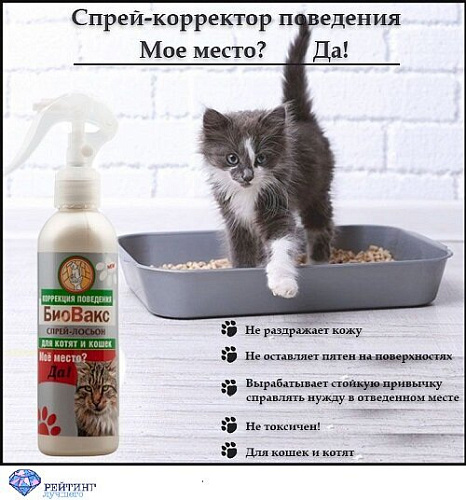 Помогите приучить вашу кошку к лотку или отучить ее метить территорию, при помощи спрея «Мое место». С данным средством ваш питомец начнет понимать, какие зоны предназначены для игр и отдыха, а какие для исправления нужды.