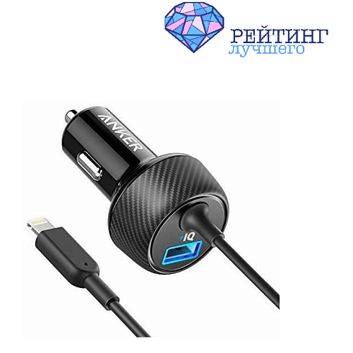 На третьем месте нашего рейтинга еще одна зарядка от бренда Anker. Модель PowerDrive 2 Elite A2214H11 не уступает по характеристикам и отличается лишь по количеству разъемов. В этой зарядке один USB порт типа А. Также устройство имеет встроенный 0.9-метровый кабель с коннектором Lightning. И это можно назвать его ключевой особенностью. Провод отличается высокой прочностью и может выдержать более 12 тысяч изгибаний. Это делает его идеально подходящим для пользователей устройств Apple.