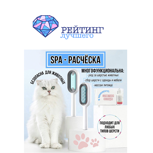 Эта расчёска подходит для сухого и влажного ухода. Она поможет избавиться от лишнего подшёрстка, очистить мех от пыли, загрязнений и неприятного запаха. А чтобы груминг превратился в настоящее удовольствие, в комплекте идут влажные салфетки и лосьон. Оберните валик салфеткой, добавьте пару капель лосьона, и ваш питомец будет сиять, как после дорогого салона.