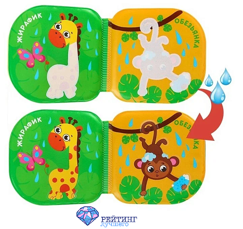 Это уникальная развивающая водная раскраска, предназначенная для детей и малышей от 4 месяцев. Книжка особенна тем, что она создана специально для использования в водной среде. Она состоит из 8 мягких страничек, которые идеально подходят для маленьких рук. Странички выполнены из материала, который не пропускает влагу. Благодаря этому книжка долговечна и безопасна для использования в воде, не боится брызг и попадания воды.