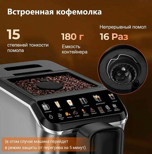 И если вдруг вы забыли долить воду, не засыпали зёрен или не закрыли крышку — не переживайте. Умная система подскажет, что нужно сделать: на дисплее появится уведомление, и машина приостановит работу до устранения проблемы. Это очень удобно, особенно когда вы ещё не до конца проснулись, а кофе уже хочется.