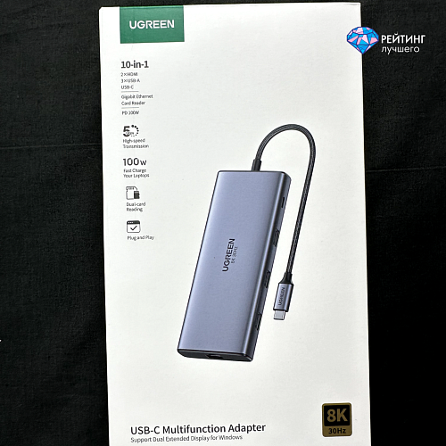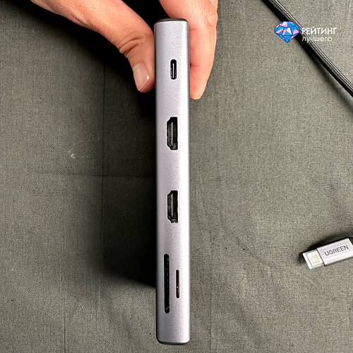 UGREEN CM490 предлагает впечатляющий набор из 10 портов в одном компактном устройстве. Это решение идеально подходит для владельцев современных ноутбуков и планшетов, страдающих от нехватки разъемов. Особенно выделяются два HDMI-порта, один из которых поддерживает разрешение 4K при 60 Гц, а второй - даже 8K при 30 Гц. Такая конфигурация открывает широкие возможности для работы с несколькими мониторами или проведения презентаций высокого качества.
